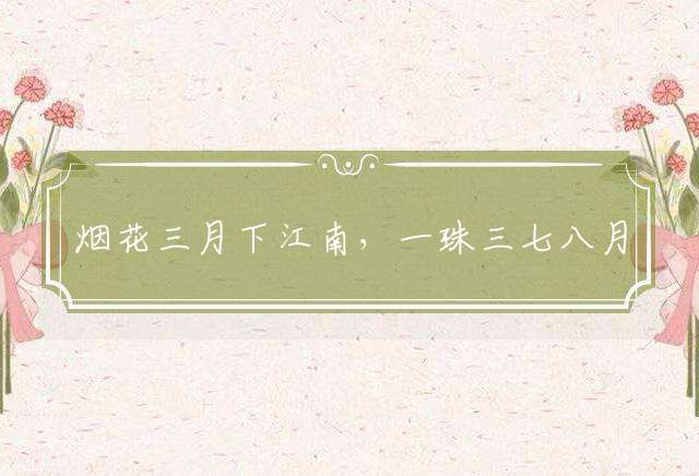 烟花三月下江南,一珠三七八月八指的是生肖马、指的是生肖牛、指的是生肖猪